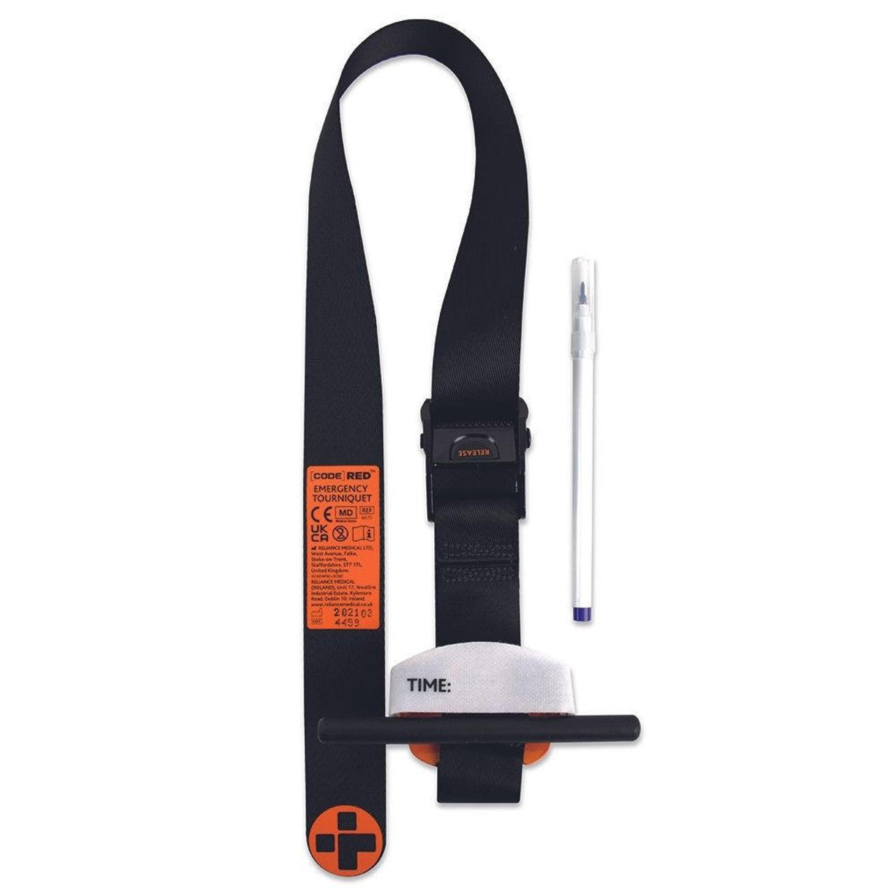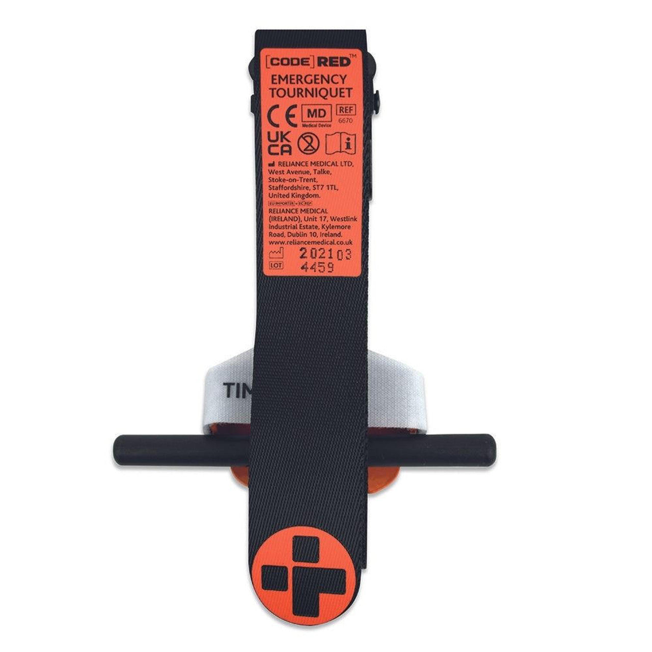 The [CODE] RED™ tourniquet from Reliance Medical is an emergency haemorrhage control device designed to stop excessive bleeding when applied to a catastrophic limb injury. The nylon webbed strapping is tested to withstand 1000kg and is stitched using high strength Kevlar thread, ensuring the tourniquet is dependable and robust.