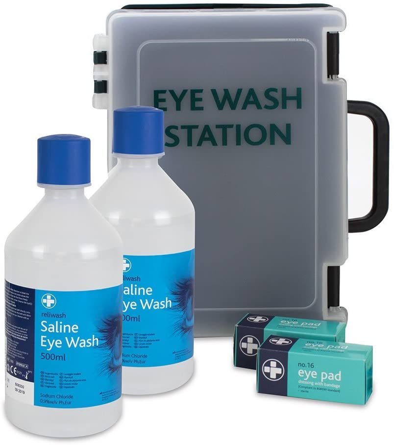 Double eye wash station kit contents - 2 x 500ml eyewash bottles 2 x eye pad dressings Supplied in durable... Read more
